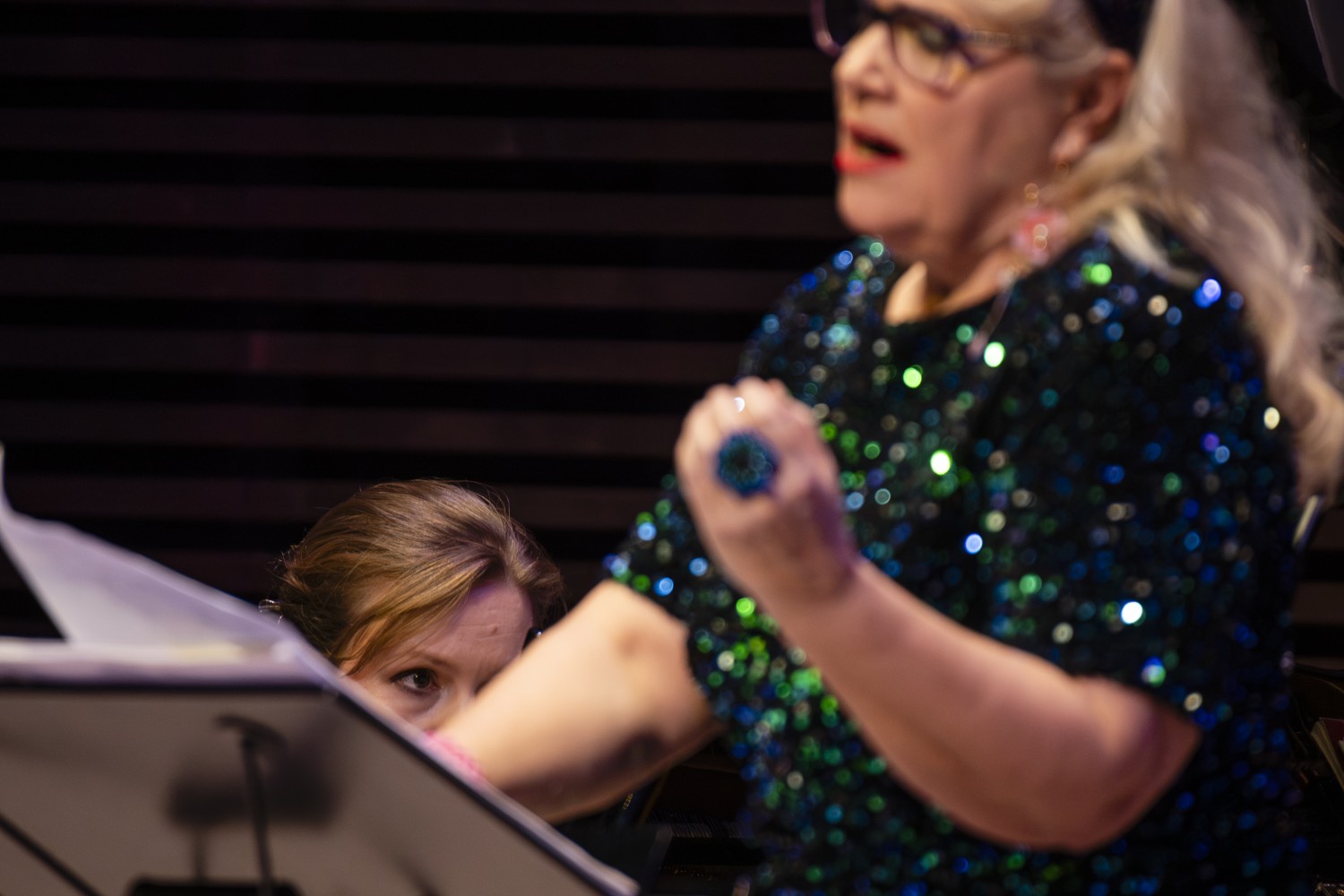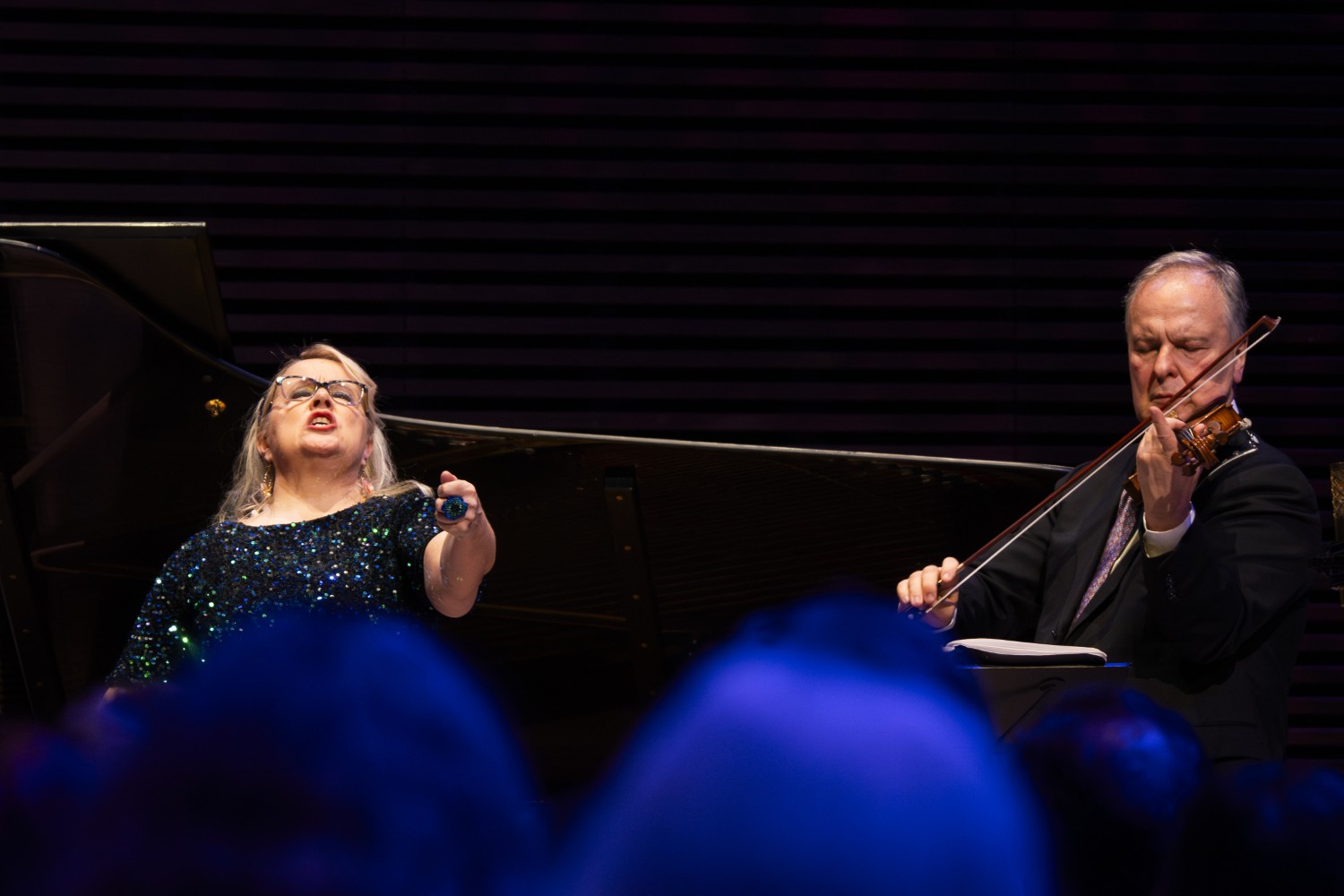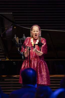 Huikeaa ääniakrobatiaa ja huumoria Voice Verser-koloratuurikonsertossa, BBC Symphony Orchestran ja Lontoolaisyleisön hurmioituneella myötävaikutuksella. Viiltävän ajankohtainen Accused, muistutuksena historian ja nykypäivän yhteyksistä kolmen eri aikakauden oikeudenkäynnin kertomana. Spectacular vocal acrobatics and humor in the Voice Verser Coloratura Concerto, with the extatic support of the BBC Symphony Orchestra and the London audiences. The piercingly topical Accused (Reduced version 2020), a reminder of the connections between history and present, told through the stories of trials from three different eras.